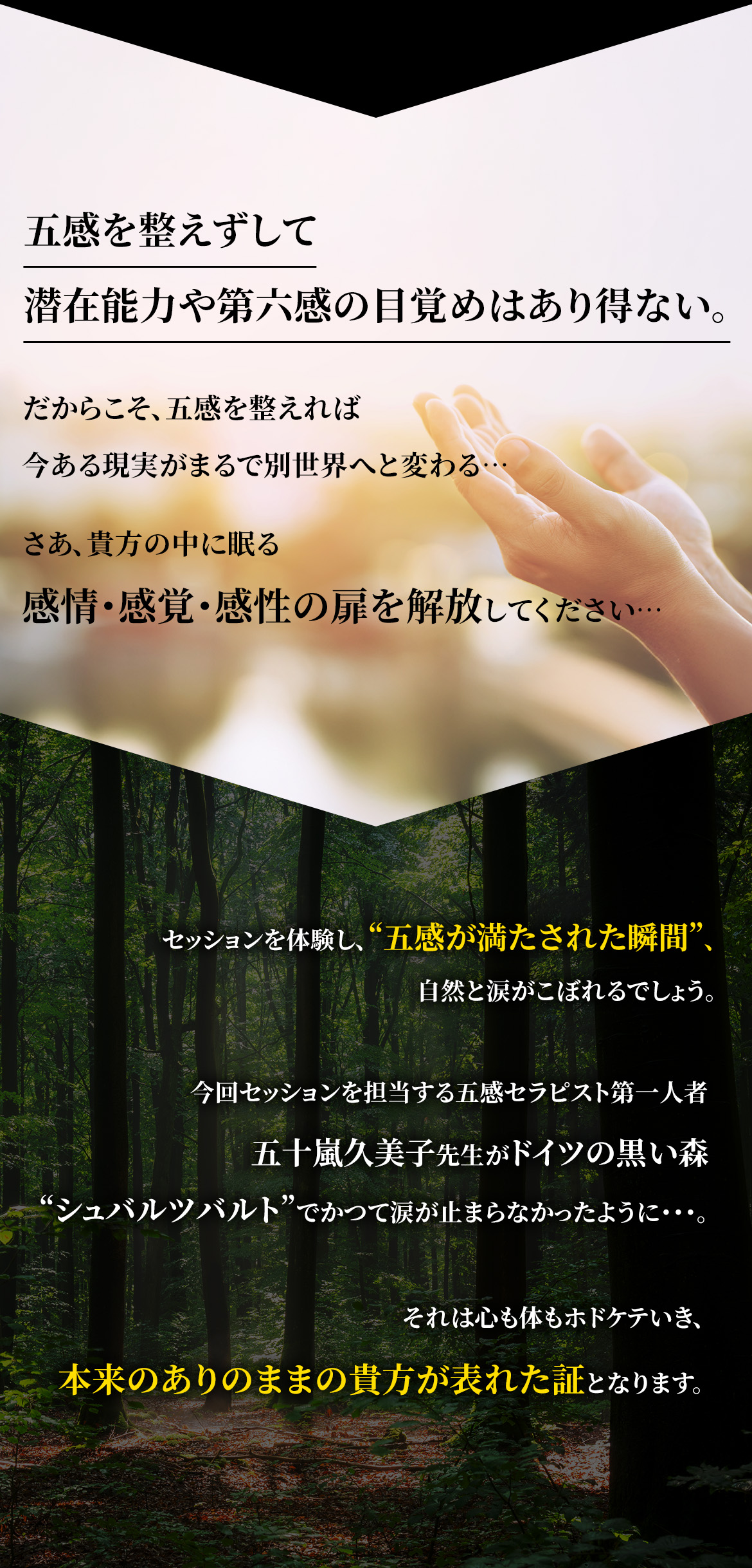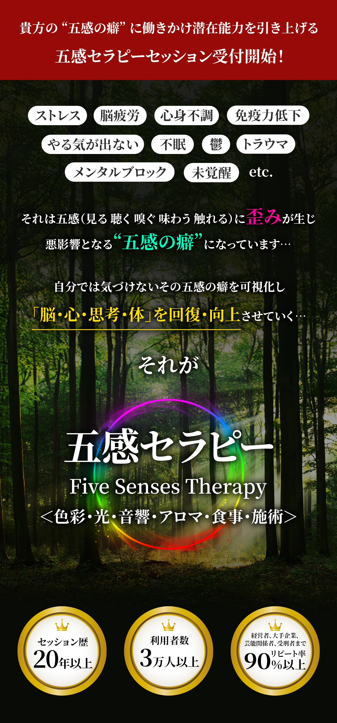 ようこそ、五感セラピーセッションのWEBサイトへお越しくださいました。