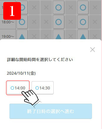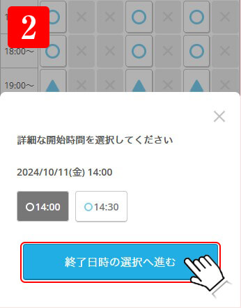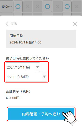 間違いなければ「終了日時の選択へ進む」をタップしてください。