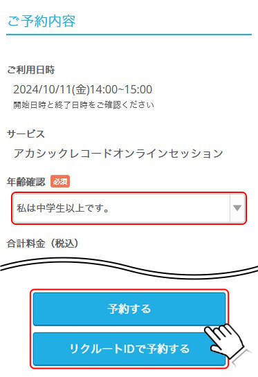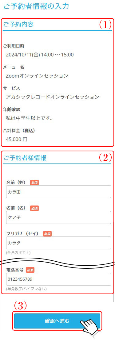 「上記に同意して予約を確定する」ボタンをクリックして下さい。