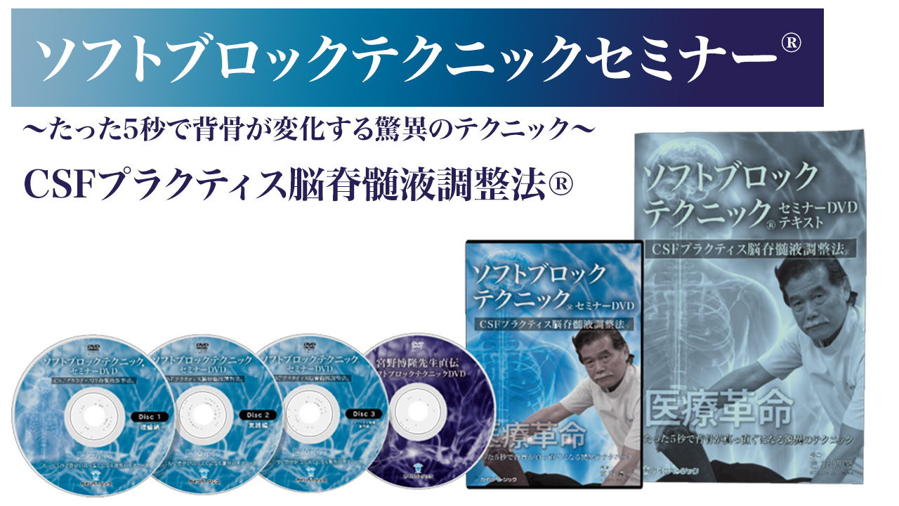| ソフトブロックテクニック®セミナー ~たった5秒で背骨が変化する驚異のテクニック~ CSFプラクティス脳脊髄液調整法® | 29,800円 (税込32,780円) |